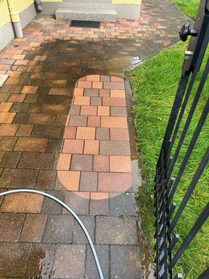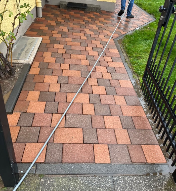 Pflasterstein-Reinigung ohne Hochdruck, ohne Chemie.